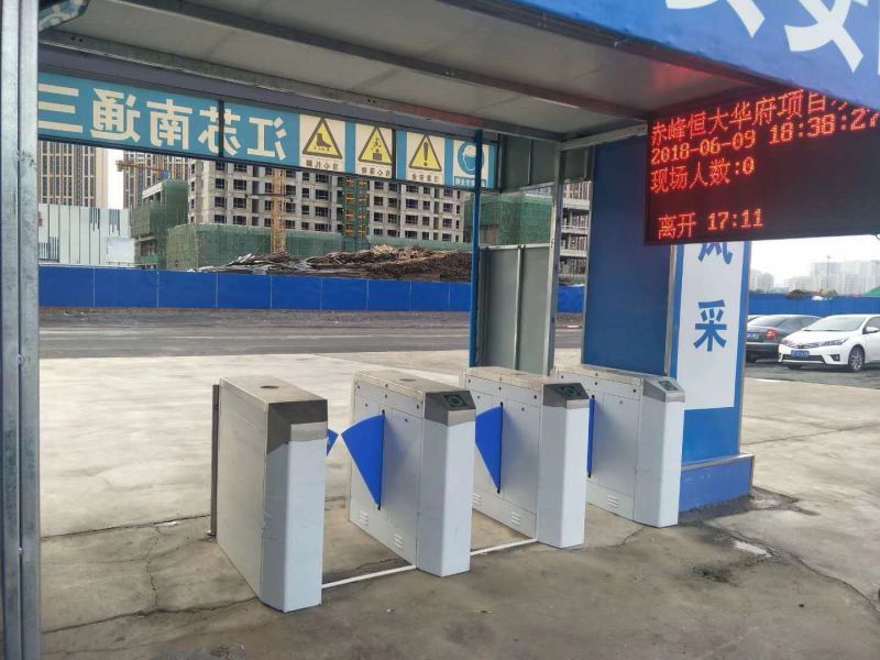 工地门禁系统在出入口处接入LED显示屏。当人员进出刷卡或按指纹、人脸识别时,可实时的显示通过人员姓名、工号,进场时间等,同时还可以显示场内总人数、离开人数、工地里还剩下人数。当无人刷卡时,可设置在空闲时间,在LED屏幕上显示欢迎词、注意事项、施工进度等信息,显示内容可自定义。